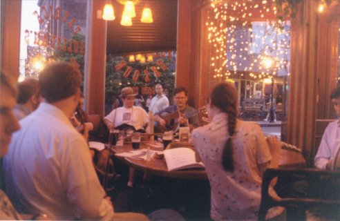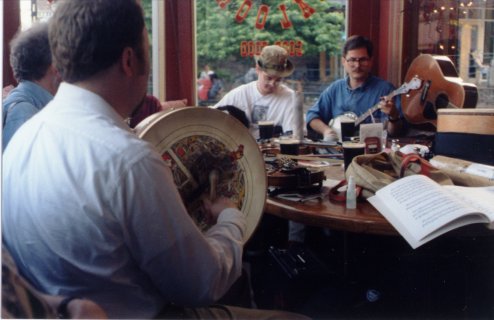 Some members of the Seisiún in June 1999: Elaine (fiddle),